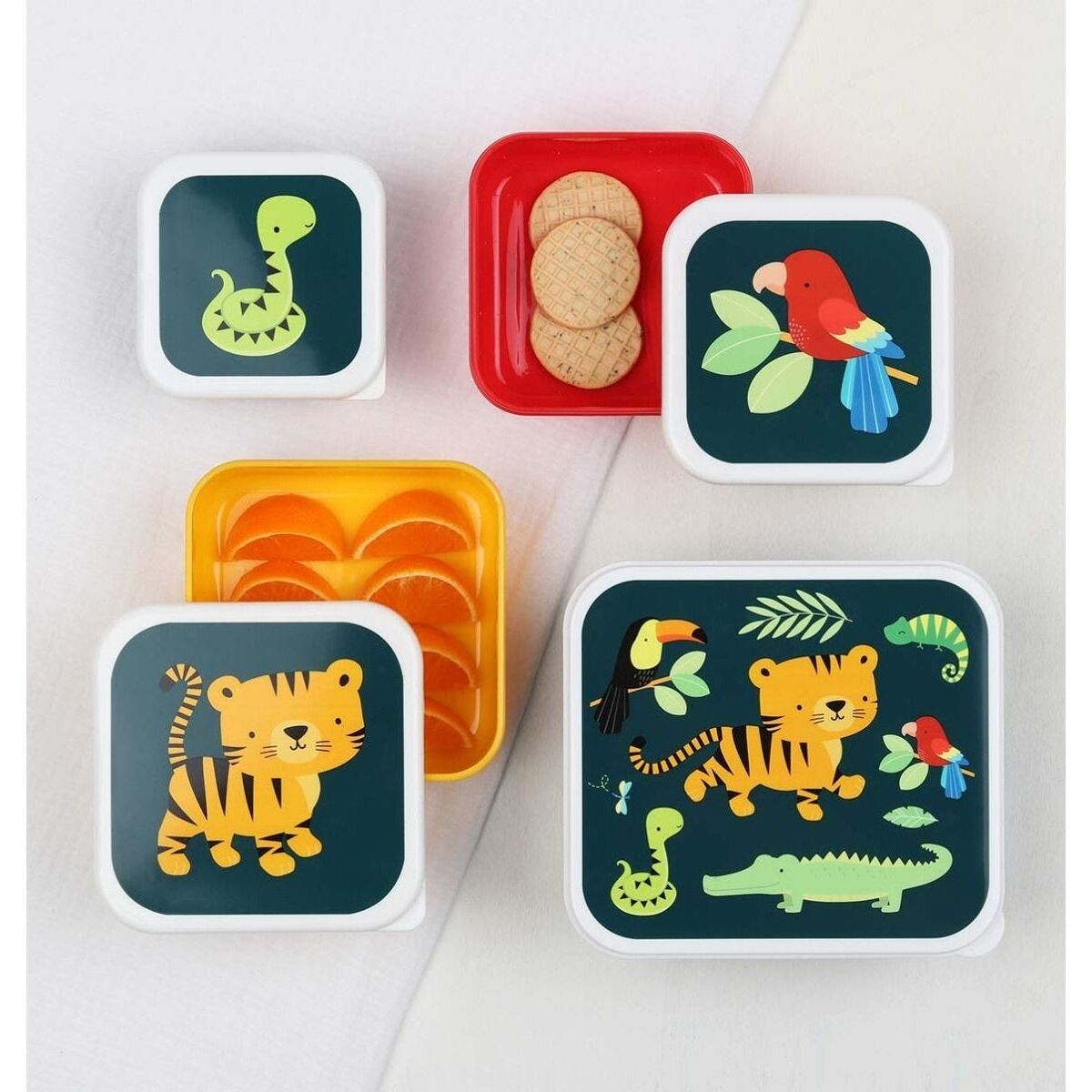 Ετικέτες: A little lovely company, Jungle Tiger, Lunch & Snack Box, SBSEJT20, Σετ 4 δοχεία φαγητού