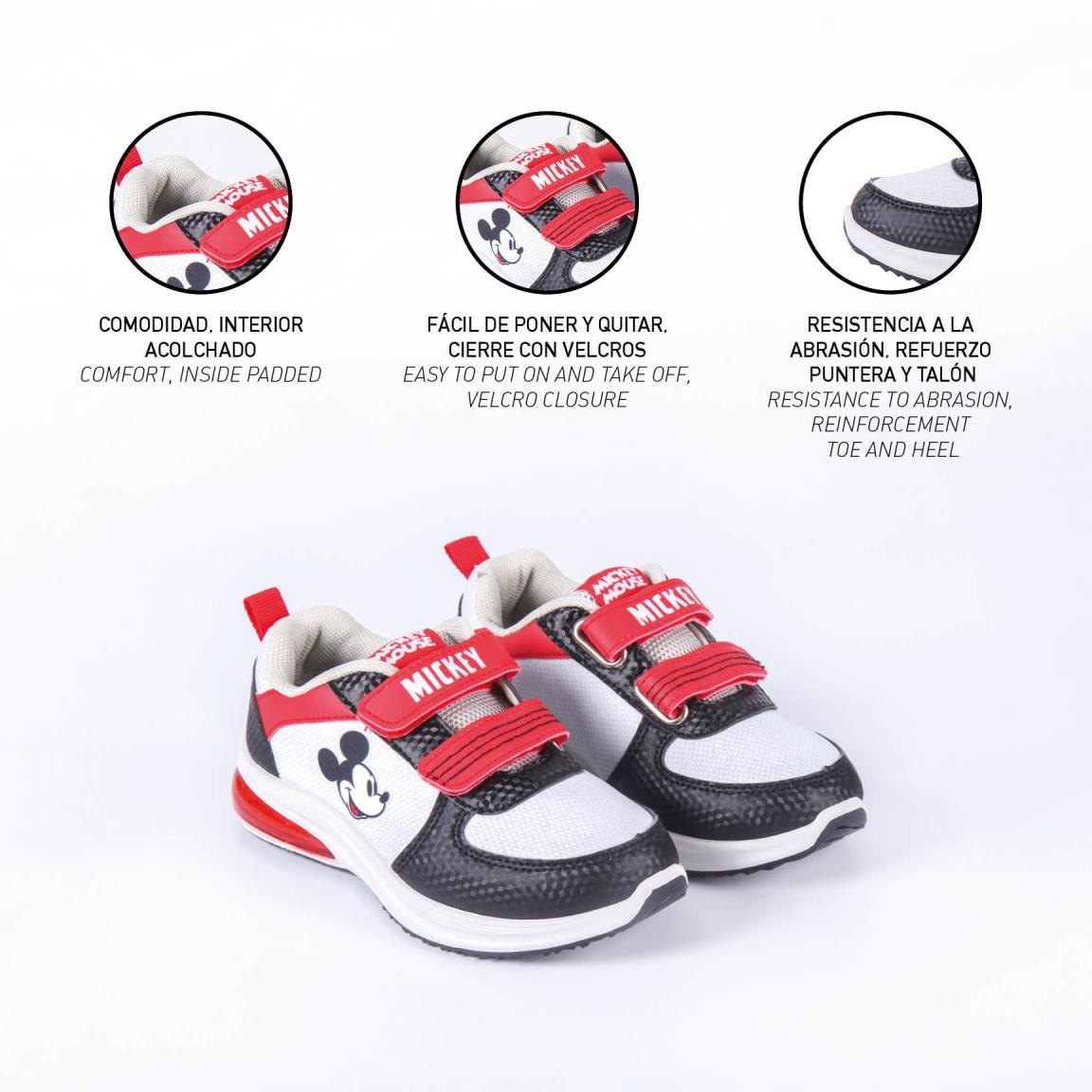 Παιδικά σπορτέξ με φωτάκι με τον Μίκυ Μάους! Με σκρατς και αντιολισθητικό πάτο, με επένδυση εσωτερικά για μεγαλύτερη άνεση, ανθεκτικά, με επιπλέον ενίσχυση στο μπροστινό και πίσω μέρος. Ευκολοφόρετα, ιδανικά για τις καθημερινές εξορμήσεις από το πρωί έως το βράδυ κάθε εποχή!