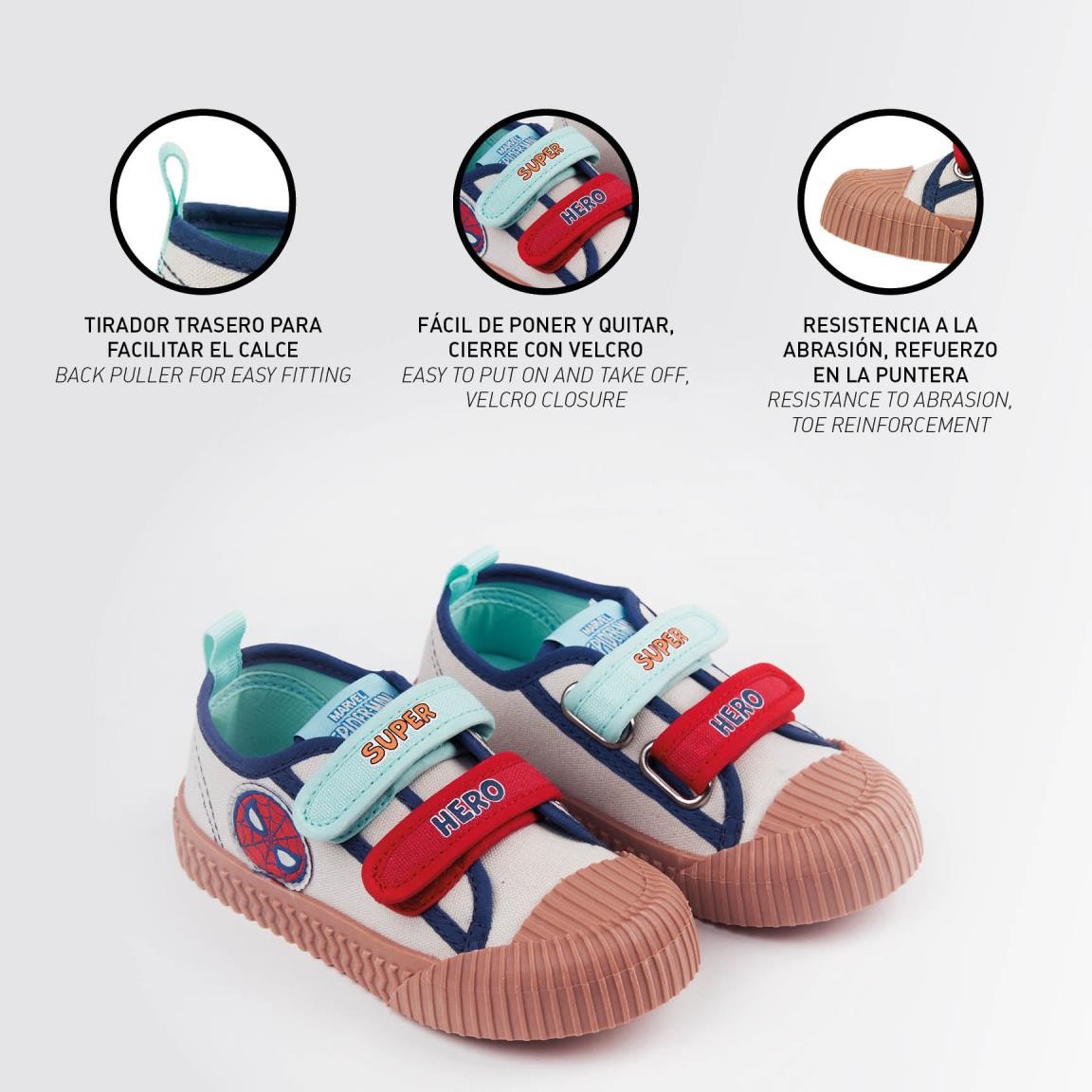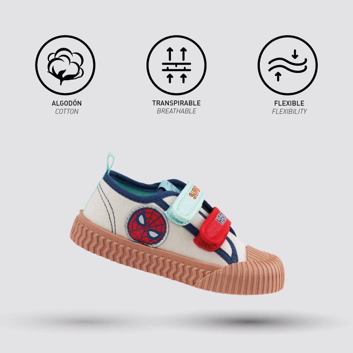 Παιδικά παπούτσια Spiderman με σκρατς και αντιολισθητικό πάτο. Από υλικό που αναπνέει, ανθεκτικά, με επιπλέον ενίσχυση στο μπροστινό μέρος. Ευκολοφόρετα και άνετα στο περπάτημα, ιδανικά για τις καθημερινές εξορμήσεις από το πρωί έως το βράδυ!
