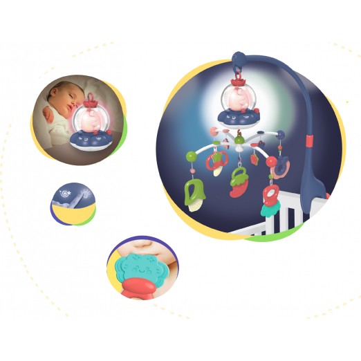 Το μουσικό περιστρεφόμενο All In One θα βοηθήσει το μωρό στον ύπνο, συμβάλλοντας παράλληλα στην ανάπτυξη της ακοής, της όρασης και του συγχρονισμού χεριών-ματιών. Τα κρεμαστά του παιχνίδια γίνονται και μασητικά. Χρησιμοποιείται αργότερα και σαν ανεξάρτητο φωτάκι νυκτός όταν μεγαλώσει το μωρό σας.