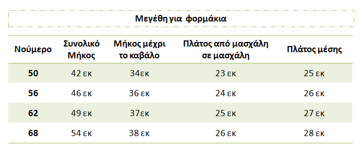 * Τα νούμερα 50 και 56 είναι για νεογέννητα μωράκια ανάλογα με το ύψος του μωρού