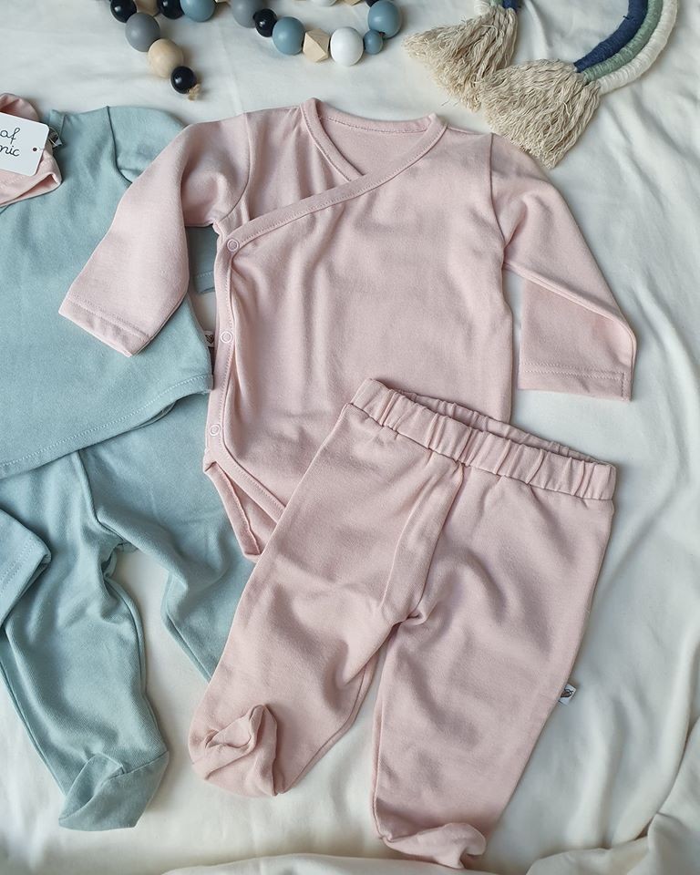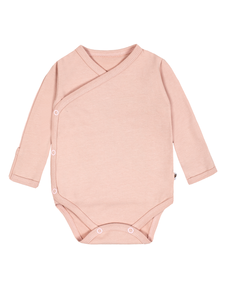 Κορμάκι κιμονό μακρυμάνικο από 100% οργανικό βαμβάκι σε ροζ απόχρωση με αντιαλλεργικά κουμπάκια χωρίς νικέλιο.