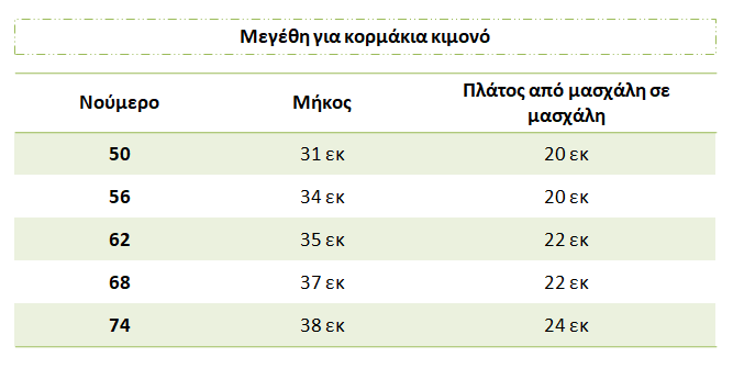 * Τα νούμερα 50 και 56 είναι για νεογέννητα μωράκια ανάλογα με το ύψος του μωρού