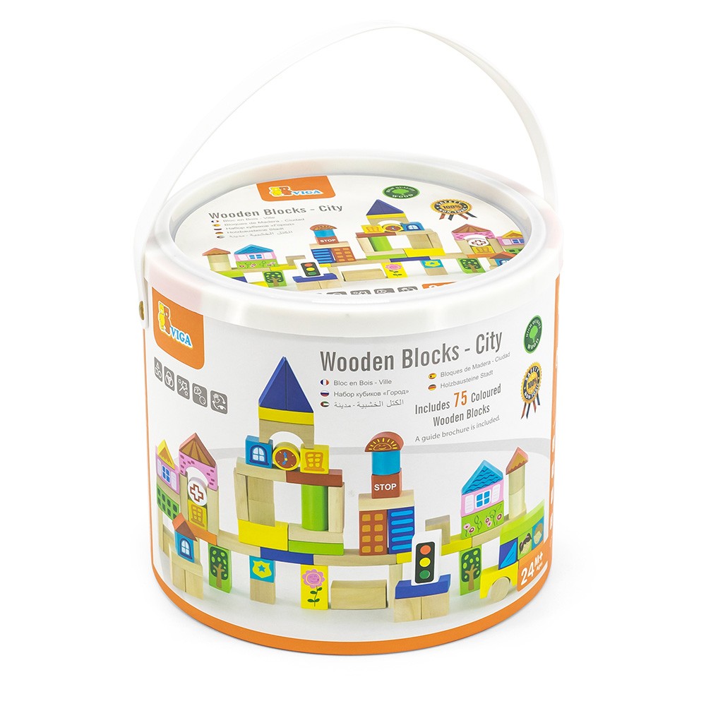 Viga – Τουβλάκια κατασκευών σετ 75 τεμάχια ‘Πόλη’ σε κουβαδάκι