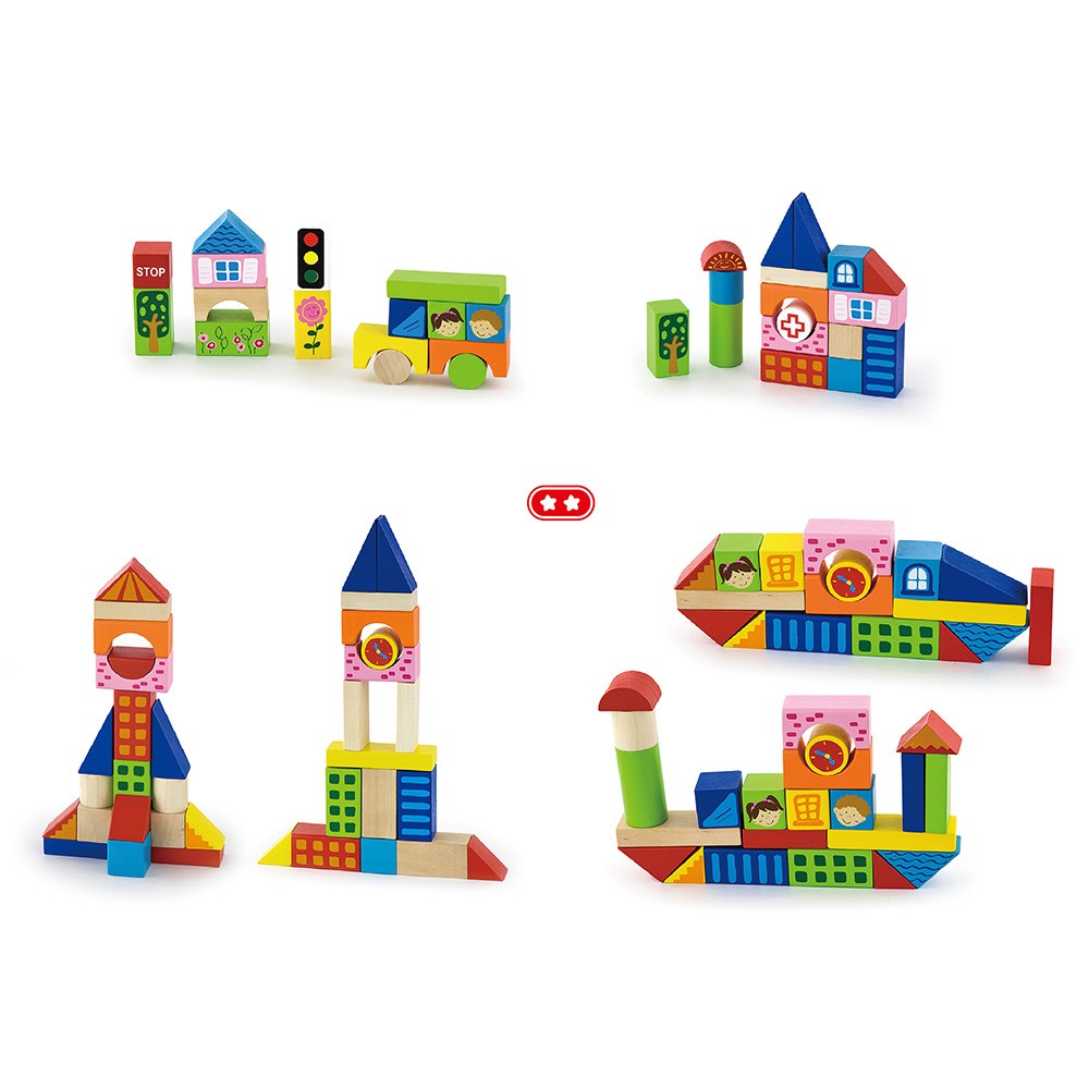 Χρωματιστά τουβλάκια από εξαιρετικής ποιότητας ξύλο και μη τοξικά χρώματα. Στοιβάξτε τα και κατασκευάστε μια πόλη ή και άλλες κατασκευές αφήνοντας ελεύθερη τη φαντασία!